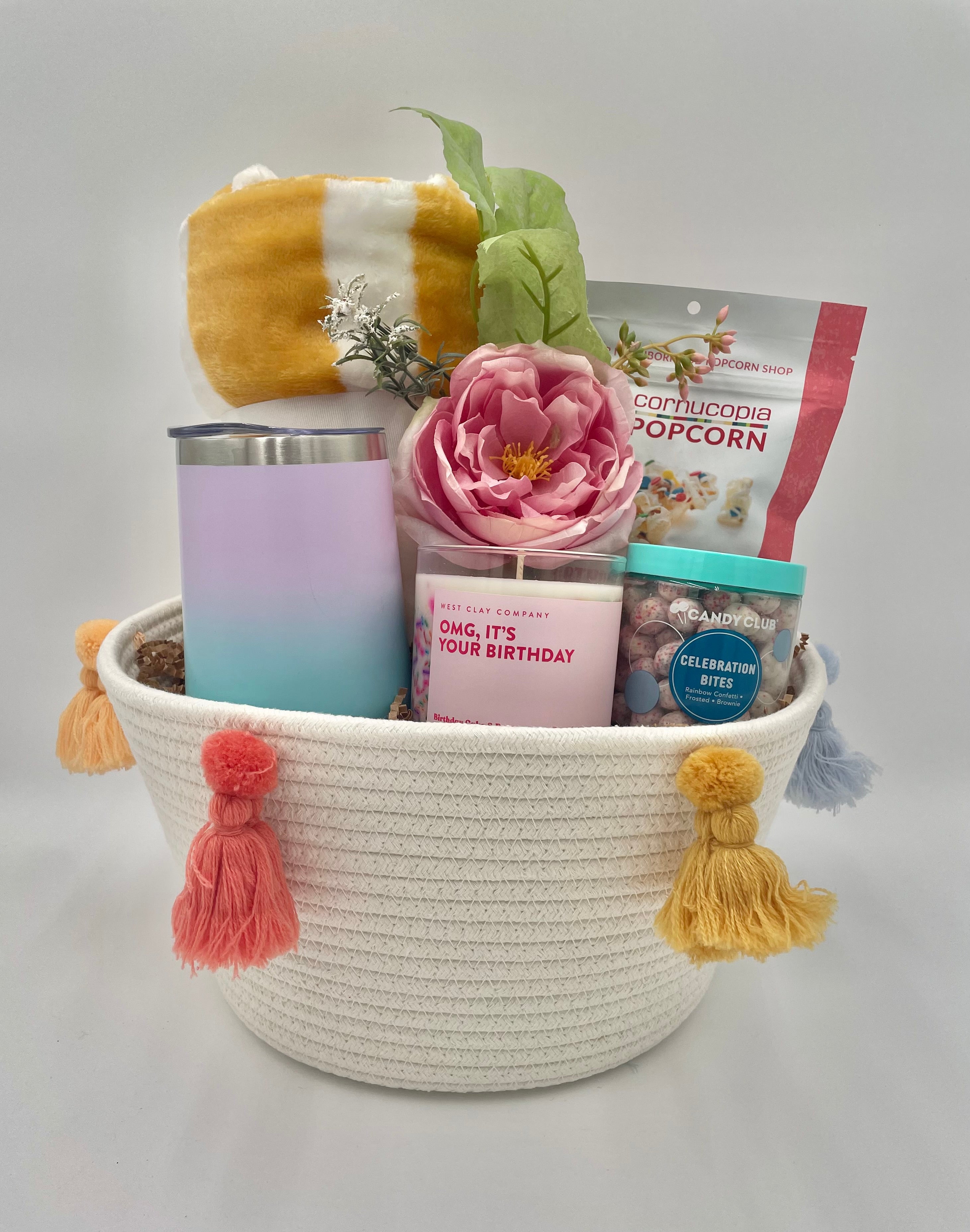 Our curators can design you custom baskets that include your promotional products along with an assortment of basket items.